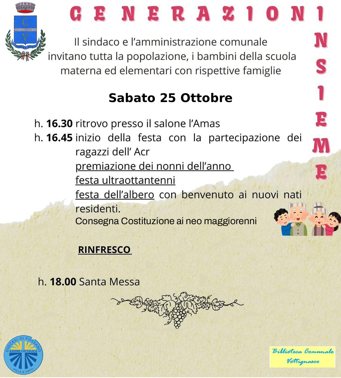 In collaborazione con la scuola primaria di Vottignasco, un mercoledì al mese gli alunni vengono accolti nel pomeriggio per il progetto di "Avvicinamento alla lettura"